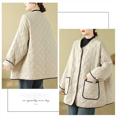 レディース ポケット付き 軽い 軽量 コート 上着 ジャケット 中綿 アウター キルティング ゆったり 女性 暖かい カジュアル ブルゾン トップス 羽織り 冬 ノーカラー 防寒 秋冬 あったか シン | gizshop