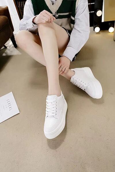 本革 牛革 厚底靴 韓国ファッション厚底スニーカー/靴 レディース/シューズ運動靴 学生美脚