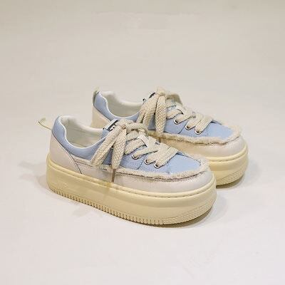 食パンキャンバスシューズ2024春新作白靴レディースカジュアルファッション百合厚底高快適板靴