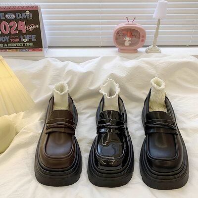 靴 レディース 厚底シュノーズ 楽福靴 身長アップ 韓国 まるあたま 復古 シングルシューズ 百掛け 快適