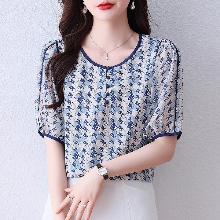 初回送料無料 丸襟上着 半袖シフォンブラウス レーディスファション商品 人気上着 トップス