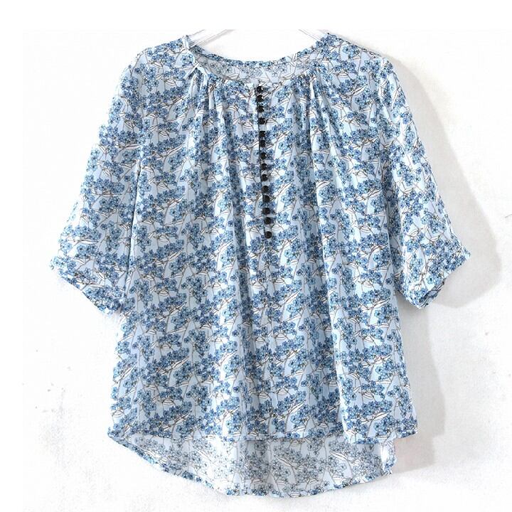 初回送料無料 半袖シャツ 上着 プリント小花柄ブラウス レーディスファション商品 おしゃれトップス