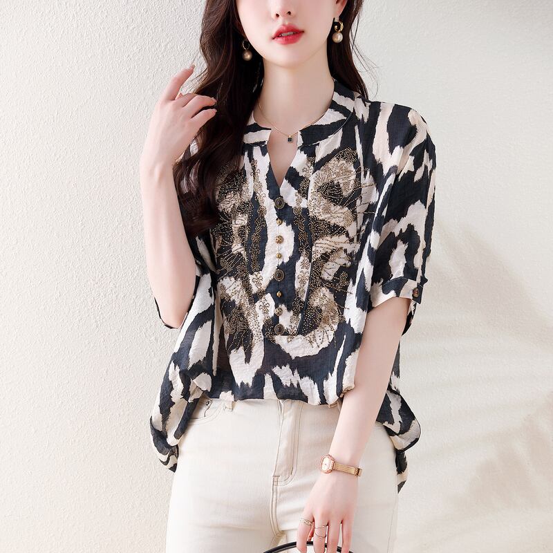 初回送料無料 半袖シャツ 上着 vネック プリント レーディスファション商品 夏 おしゃれトップス