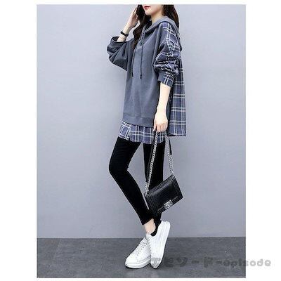 パーカー レディース スウェット 秋冬 厚手 裏起毛 プルオーバー パーカー トップス 長袖 重ね着風 フード付き レイヤード 20代 40代 30代 新作 おしゃれ