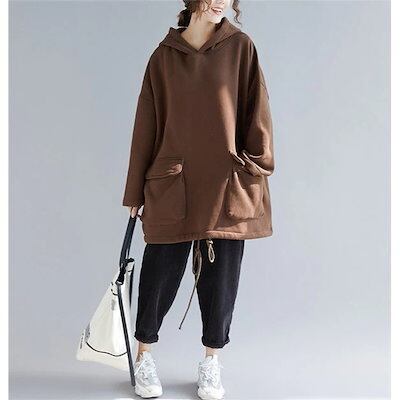 ロングパーカー パーカー フード付き 裏起毛 ポケット付き オーバー レディース サイドスリット 体型カバー アウター ゆったり 大きいサイズ