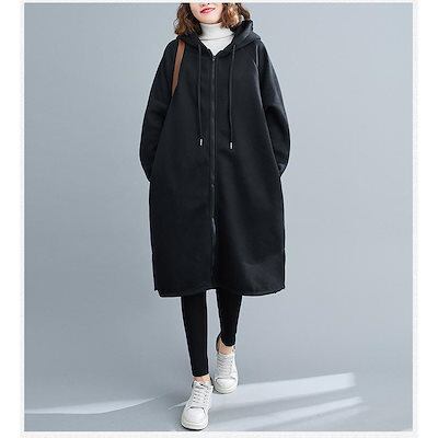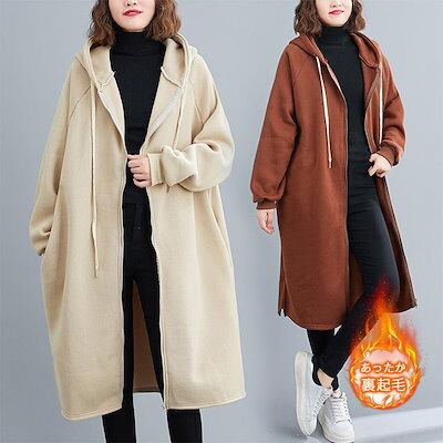 ジップアップパーカー 裏起毛 パーカー レディース ロング丈 秋 冬 ジップアップ フード付き 長袖 サイドスリット 可愛い 秋服 ロングパーカー スウェット パー