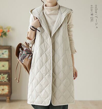 ベスト レディース ダウン 秋冬 フード付き ロングベスト 冬 軽い 暖かい 防寒 キルティングコート ロング 袖なし 大きいサイズ キルティングベスト 軽量 キルト ダウンベスト 薄手 女の子 あっ