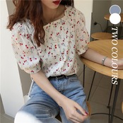 【Women】2022年春夏新作 韓国風レディース服 花柄シャツ 半袖Tシャツ パフスリーブ