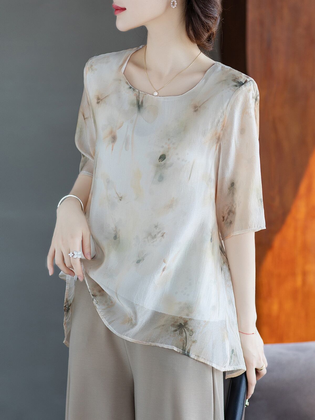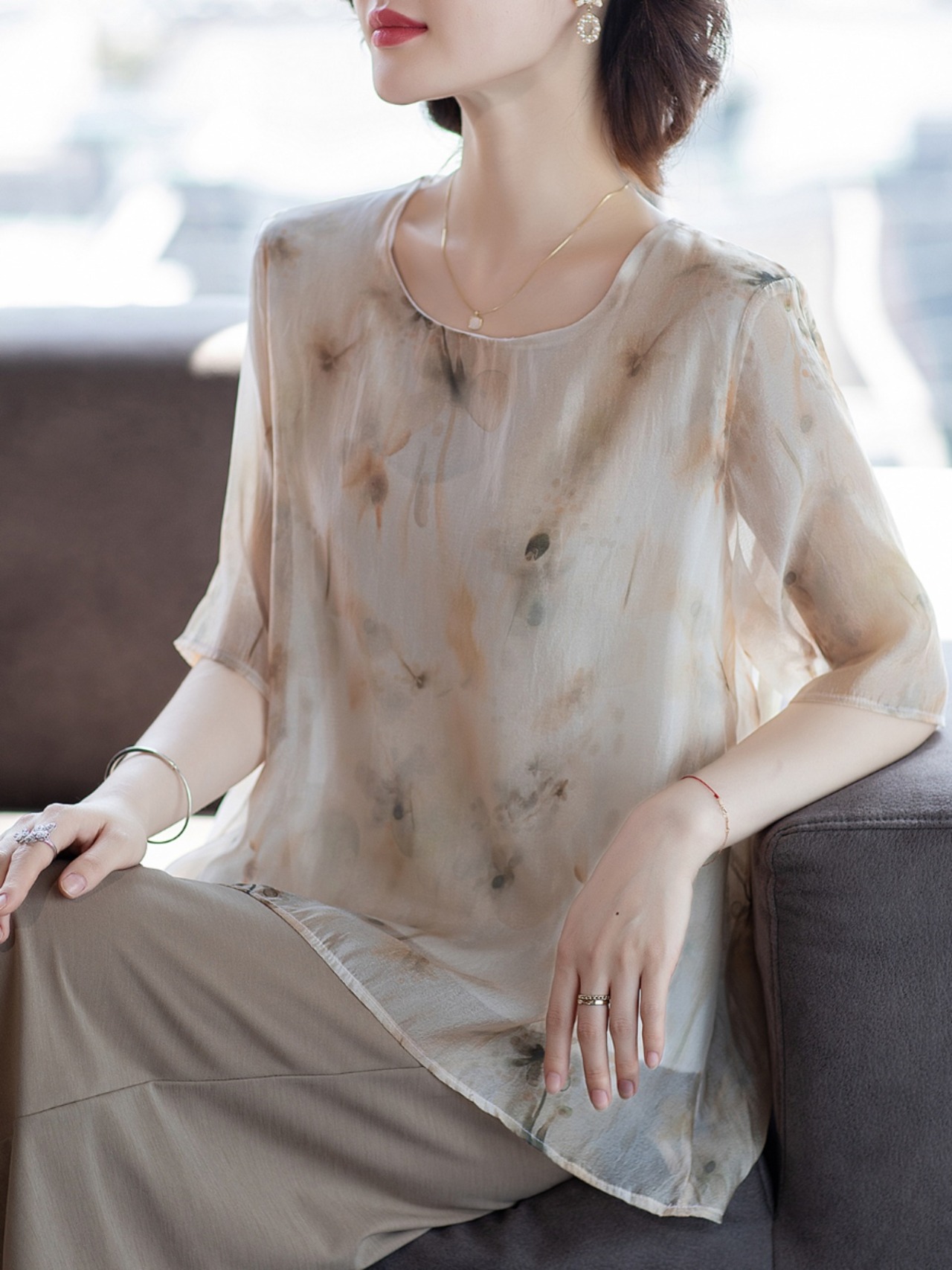 初回送料無料 夏服 新作 半袖シフォンTシャツ トップスパンツ2点セット レディースファション商品