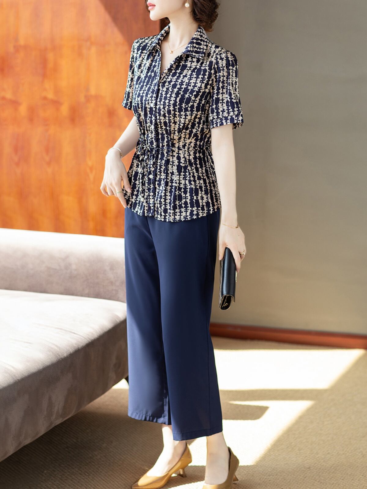 初回送料無料 夏服 新作半袖シャツ Tシャツ 上着パンツ2点セット レディースファション商品