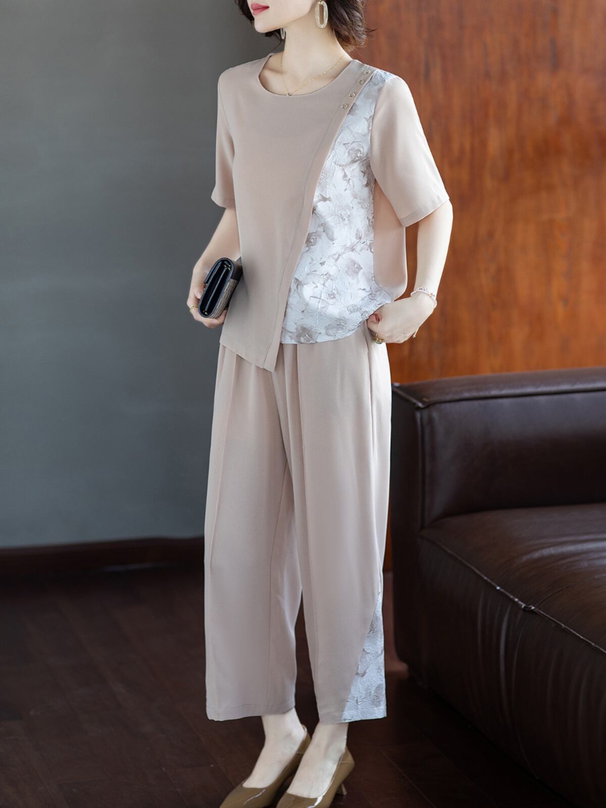 初回送料無料 夏服 新作半袖シフォンTシャツ おしゃれ上着パンツ2点セット ファション商品