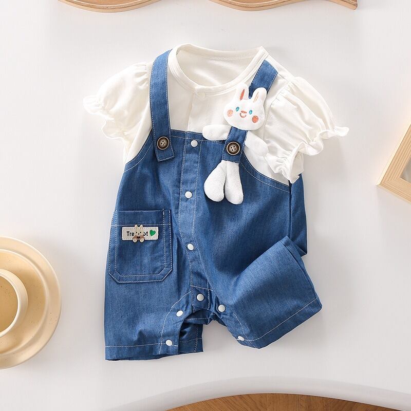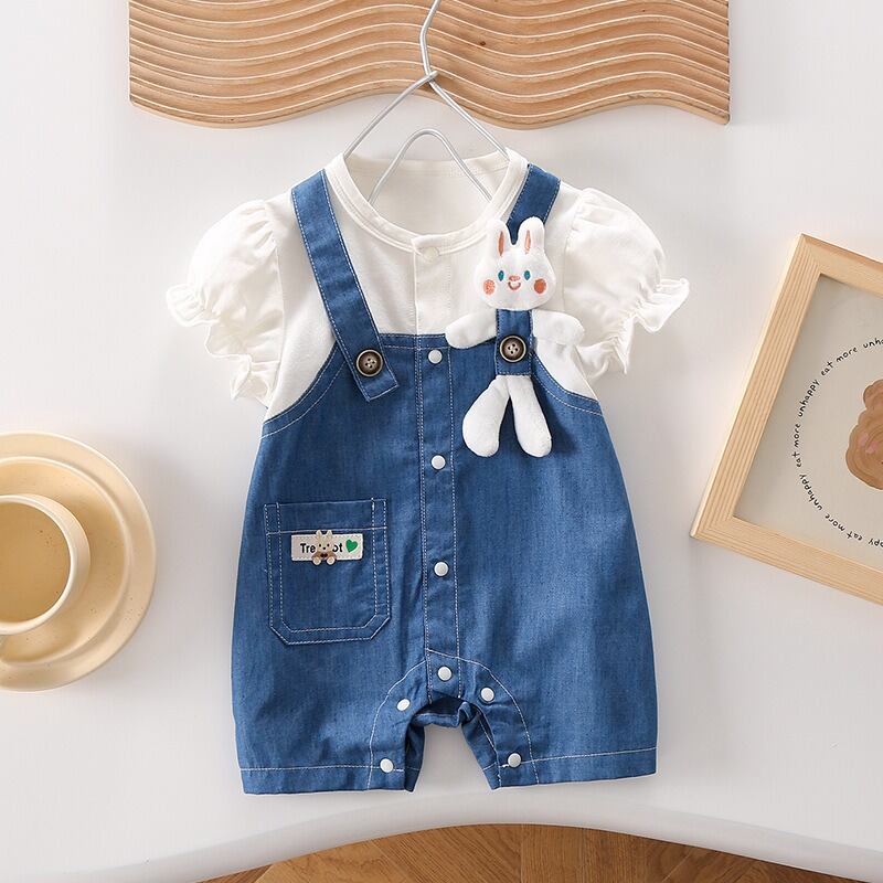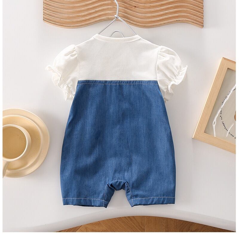 夏子供服 半袖 ワンジー かわいい フェイクツーピース ロンパース ベビー服