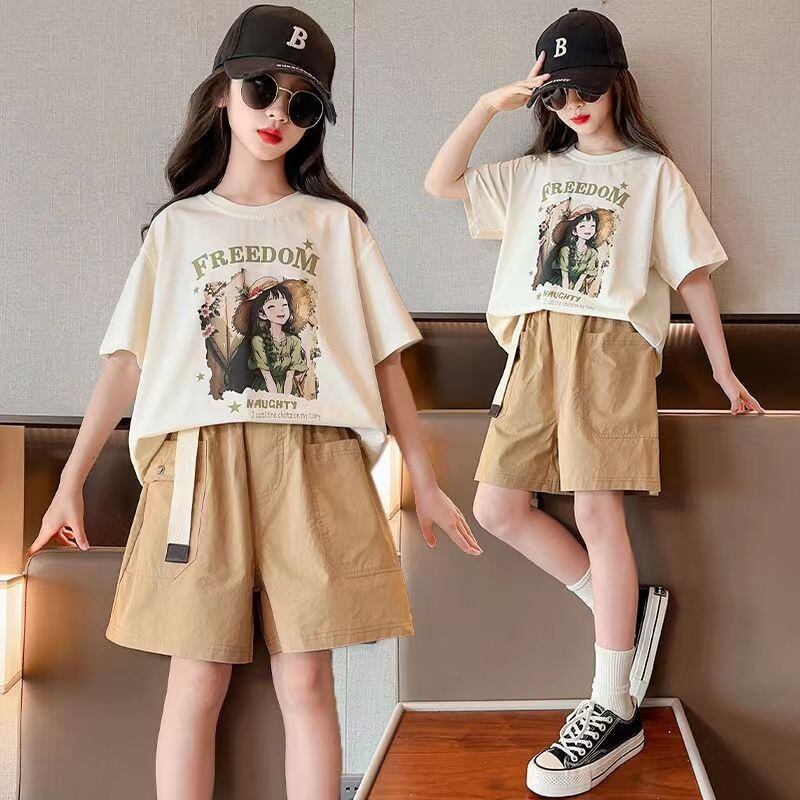 女の子 夏子供服 プリント半袖Tシャツ ゆったりショートパンツ 2点セット