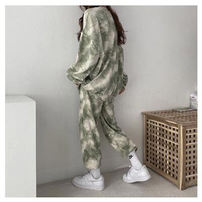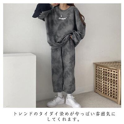 長袖 レディース スウェットトレーナー スウェット上下セット スエット ロングパンツ ナイトウェア タイダイ染め セットアップ 秋冬 ルームウェア 裏起毛 トレーナー 部屋着 寝巻き カジュアル 可 | gizshop