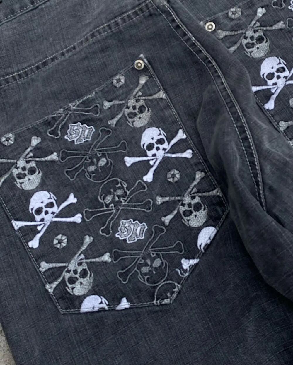 ポケットスカルデザインのカジュアルストレートパンツ,y2kパンツ,ヒップホップスタイル,アメリカンスタイル,デザイン要素,ファッショントレンド y2k ボトムス T240901125834_03 | gizshop