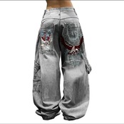 レディースカジュアルストレートジーンズ,ストリートy2k,新しいファッション,プリントパターン,原宿,ルーズジョーカー,ワイドレッグパンツ,ハイウエスト y2k ボトムス T240901131410_06 | gizshop
