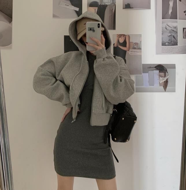 春秋新作 女 レディース ハイウエスト 長袖 ミニ ワンピース ドレス タイトスカート セット