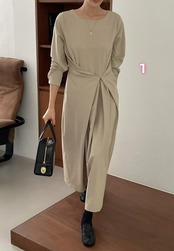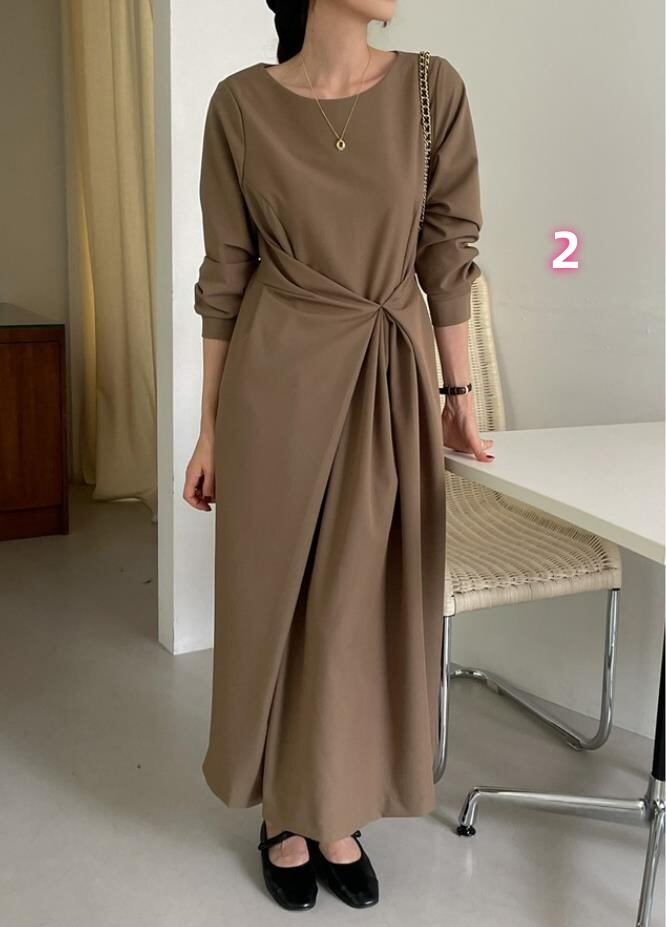 2025秋冬新作 女 レディース ハイウエスト 長袖 ロング ワンピース 台型スカート