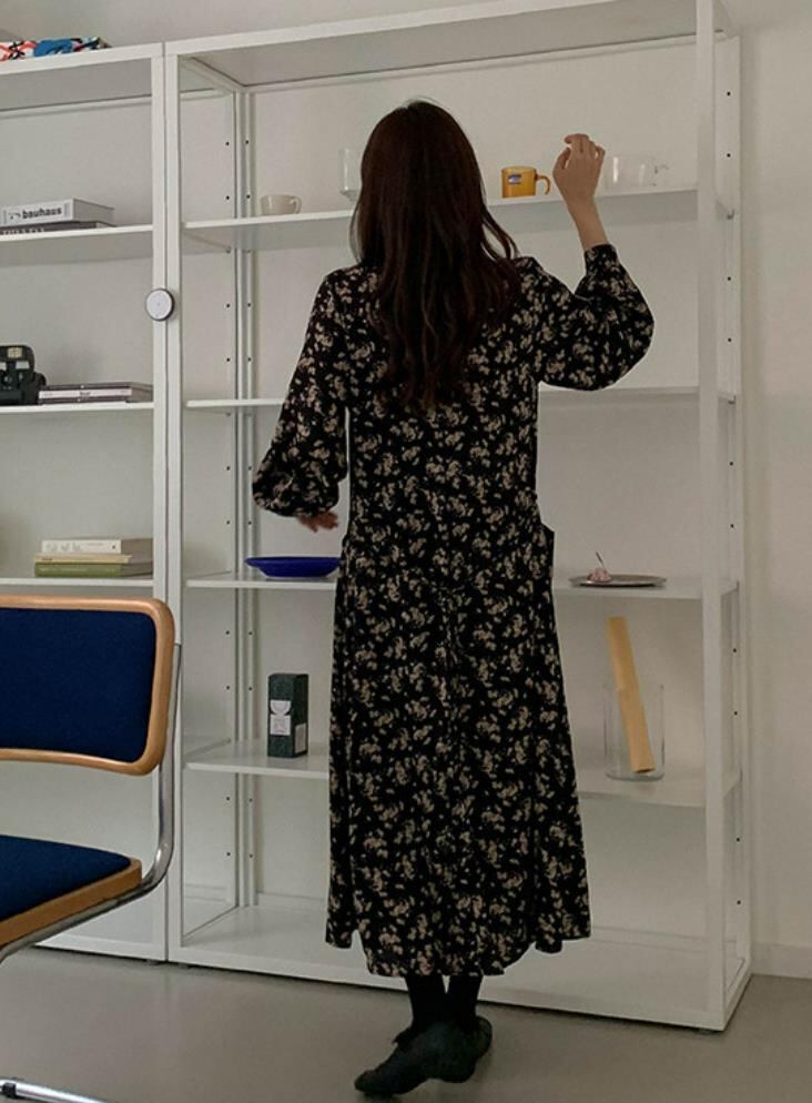 2025秋冬新作 女 レディース ハイウエスト 長袖 花柄 ロング ワンピース 台型スカート