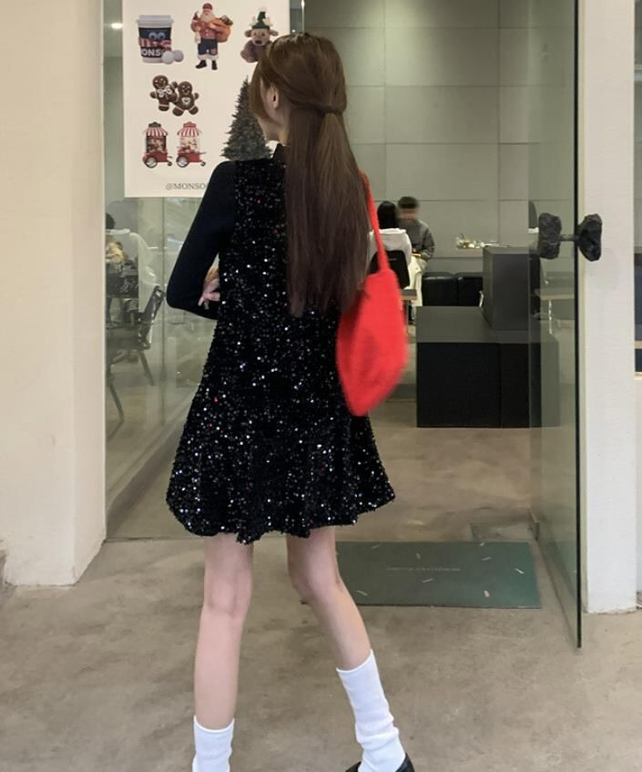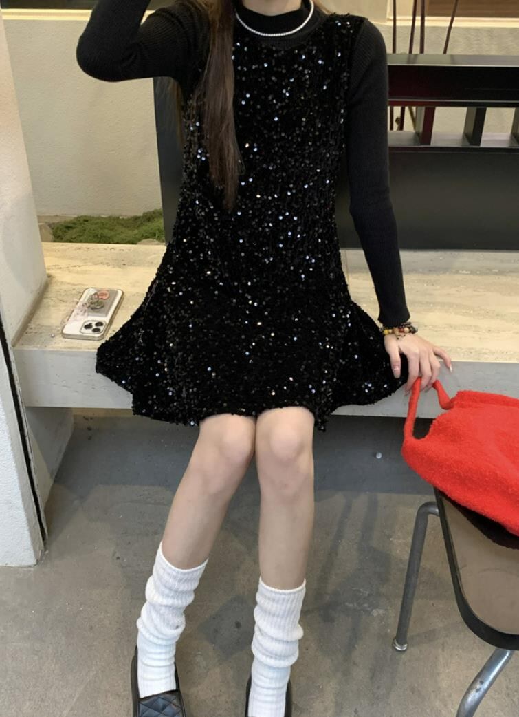 秋冬新作 女 レディース 袖なし サロペットスカート ミニ ワンピース ドレス 台型スカート セット