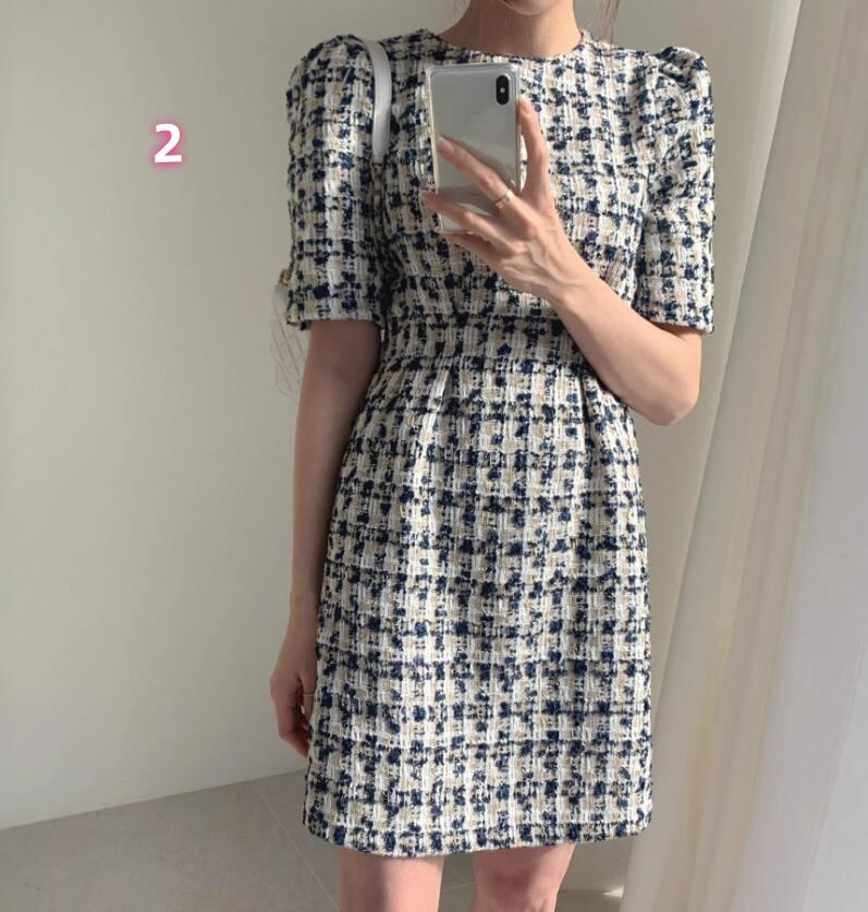 2025秋冬新作 女 レディース ハイウエスト 半袖 chic ミニ ワンピース ドレス タイトスカート