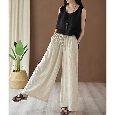 ガウチョパンツ レディース 無地 フレア ワイドパンツ 大きいサイズ ハイウエスト ボトムス 着やせ