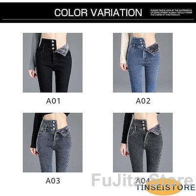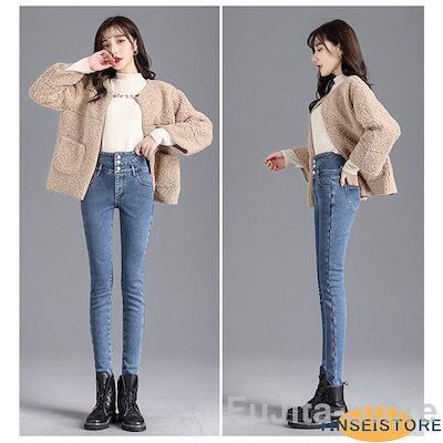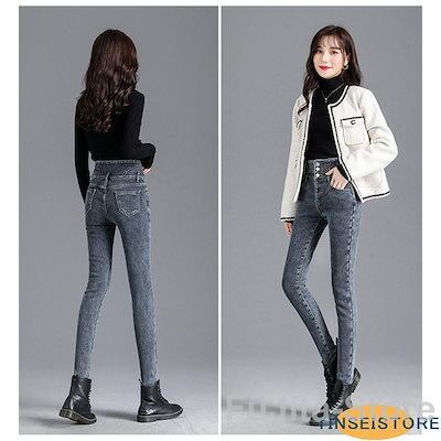 デニムパンツ ハイウエスト スキニーデニム レディース 伸縮 美脚 細め 韓国ファッション 秋冬 おしゃれ ロング丈 裏起毛 暖かい