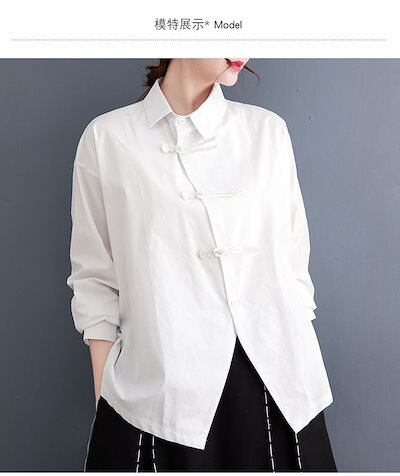 「ファットガール」 民族風 チャイナボタン 中華風ブラウス 春 大きいサイズ 不規則裾 レディースシャツ レディースブラウス メガ割