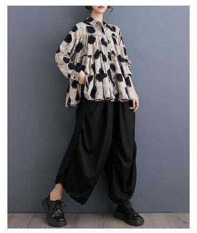 「ファットガール」 春 水玉 ブラウス ボリューム感 ゆったり 大きいサイズ ふわふわ レディース シャツ
