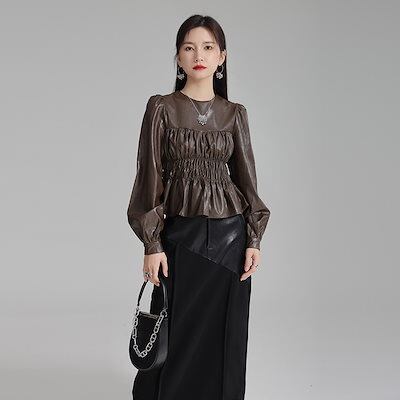 【J.Fashion】 2024春 レザー ブラウス 皺 着痩せ レディース トップス 関連商品は店で購入可能
