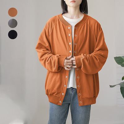 春 新作 丸ネックスウェット カーディガン秋冬 ゆったりセミロング レディース スウェット カジュアル トップス アウターTシャツカットソー