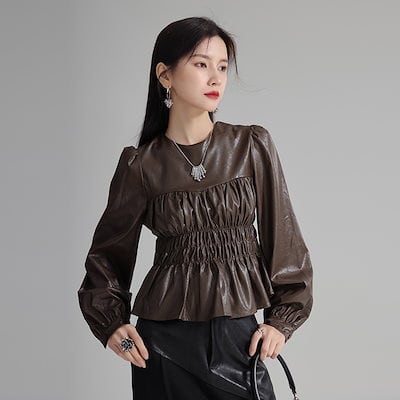 2024 春 新作 ゆったり 丸ネック トップス PU レディース シャツ おしゃれ オシャレ ブラウスuvカット カーディガン