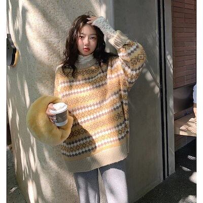 ニット 2024 春新作 トップス/ニット/セーター 無地 レディース セーター ラウンドネック セミロング 冬 新作 レトロ 怠惰な風 ゆったり ブラウス メガ割