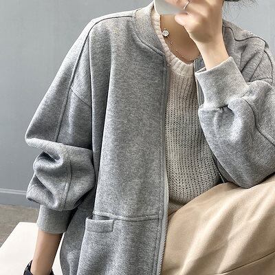スタジャン レディース スウェット カーディガン トレーナー トップス パーカー ジャケット カットソー 春 秋 レディース ライトコート 羽織り ビッグシルエット 体型カバー