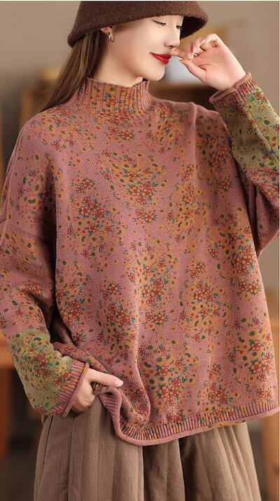 ニット セーター レディース トップス 花柄 長袖 ハイネック 春 秋 冬 ンド トップス セーター おしゃれ 春 秋 着回し シンプル お洒落 大人 カジュアル こなれ感 柔らかい トレンド感 暖か | gizshop