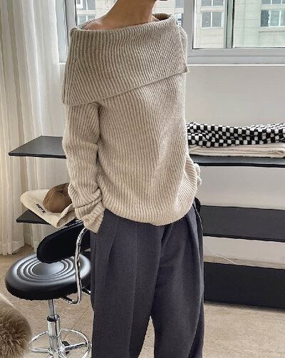 ニット セーター レディース ビックカラー セータートップス 長袖 春 秋 おすすめ トレンド トップス セーター オフショルダー おしゃれ フリーサイズ 着回し シンプル おしゃれ 大人 カジュアル | gizshop