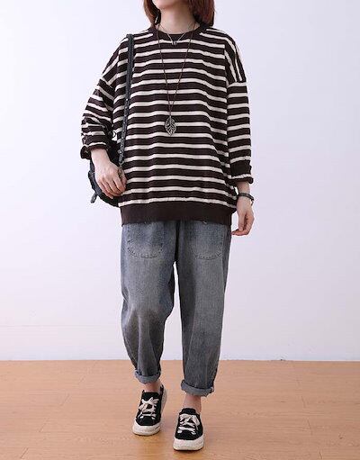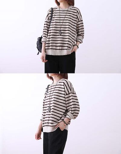 ニット レディース ボーダー プルオーバー 春 秋 バックボタン 長袖 綿 セーター ボーダー柄 カットソー きれいめ お洒落 フェミニン 着回し シンプル カジュアル 体型カバー 柔らかい オシ | gizshop