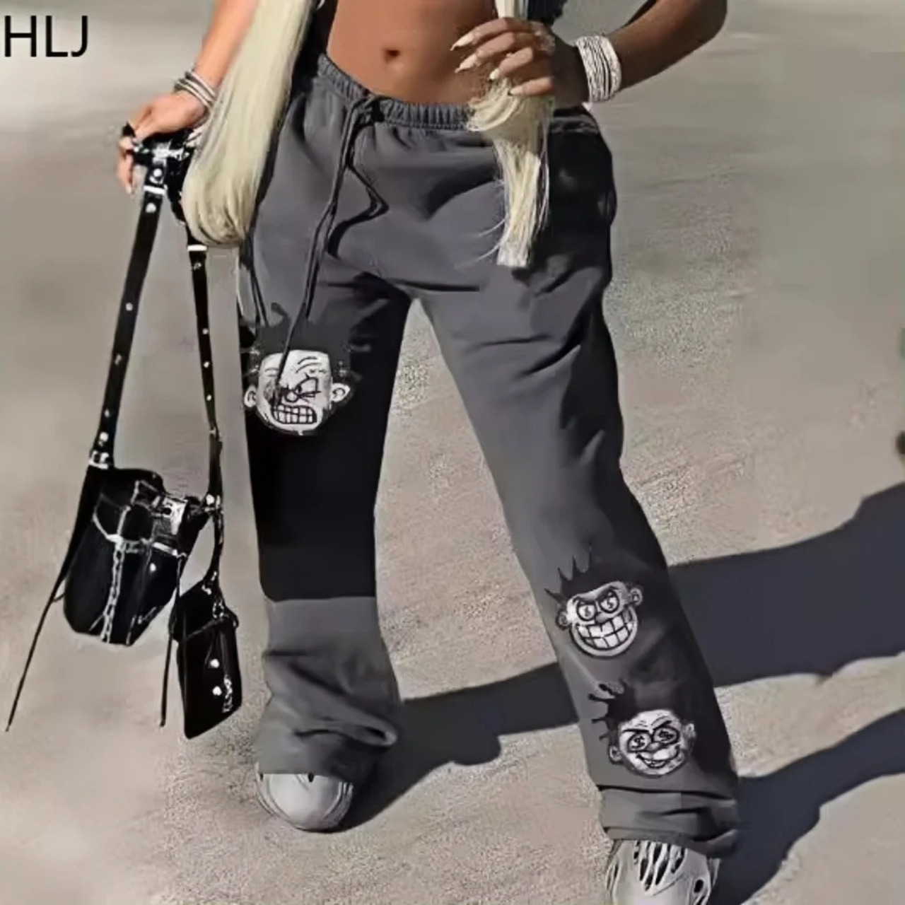 Hlj-女性用レタープリントスウェットパンツ、ドローストリングパンツ、ボトム、カジュアルポケット、バギーストリートウェアトラックスーツ、スウェットパンツ、y2k ボトム ワイドレッグ バギーパンツ T240831173514_08