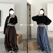 女性用ルーズカーゴパンツ,カジュアル,無地,伸縮性ウエスト,ワイドレッグ,ポケット付きパンツ,ストリートウェア,y2k ボトム ワイドレッグ バギーパンツ T240831222335_01 | gizshop