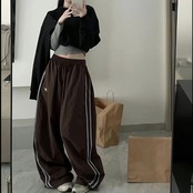 女性用ルーズカーゴパンツ,カジュアル,無地,伸縮性ウエスト,ワイドレッグ,ポケット付きパンツ,ストリートウェア,y2k ボトム ワイドレッグ バギーパンツ T240831222335_02 | gizshop