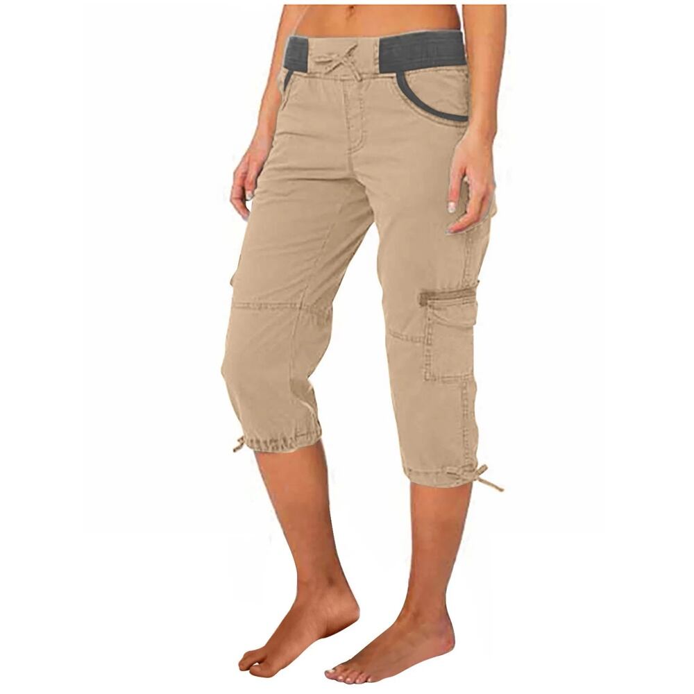 レディースマルチポケットカーゴパンツ、カジュアルストリートウェア、伸縮性ウエスト引きひも、7点オーバーオール、スポーツ、夏 ボトム ワイドレッグ バギーパンツ T240831222429_02 | gizshop