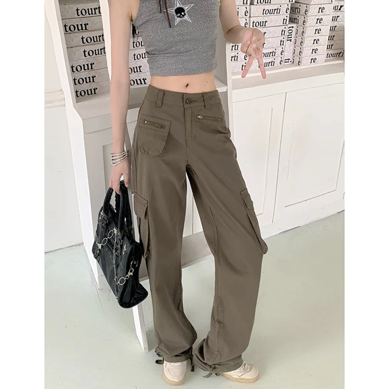 Zoenova-女性用カーゴパンツ,グリーンバギースーツ,ストリートウェア,ポケット,ワイドレッグ,ストレートパンツ ボトム ワイドレッグ バギーパンツ T240831222452_02 | gizshop