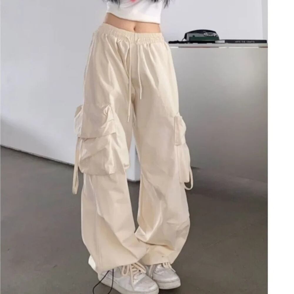 女性のヒップホップカーゴパンツ,カジュアルなストリートウェア,ハイウエスト,大きなポケットのパンツ,ドローストリングのバギー,ワイドレッグ,夏 ボトム ワイドレッグ バギーパンツ T240831222645_01 | gizshop