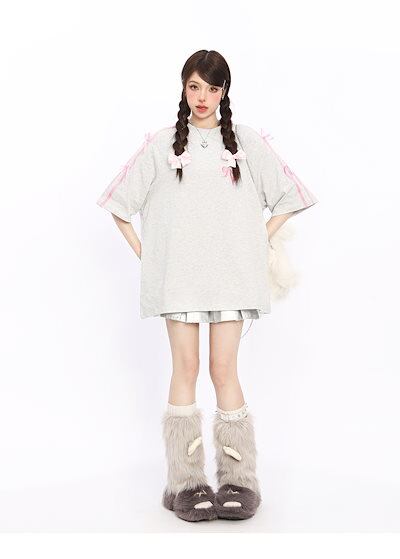 2024夏 韓国可愛い風トップス Tシャツ ファッション系 半袖 スリムフィット サイド ペイントシルエット ゆったり丈 ロングレディースサイズ韓国Vネックおしゃれカジュアルメンズライク T | gizshop