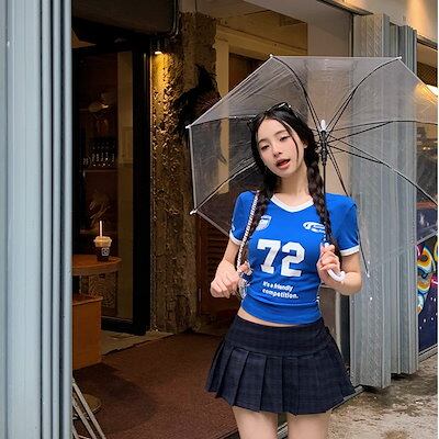 2024 春夏トップス プリント半袖 Tシャツ 韓国 ラウンドネックロゴスリム 可愛い風へそ出し ショート おしゃれスリーブ カジュアルサイドコーデ丈 ファッション系レディースストリートお出かけ T | gizshop