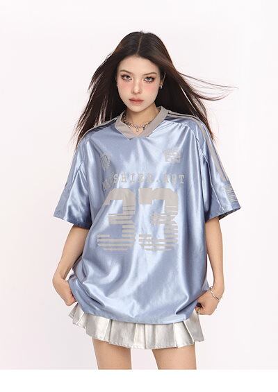 2024 夏 韓国 可愛い風トップス Tシャツ ファッション 半袖 スリムフィット サイド ペイントシルエット ゆったり丈 休日レディースサイズ韓国Vネック おしゃれ カジュアル メンズライク T | gizshop