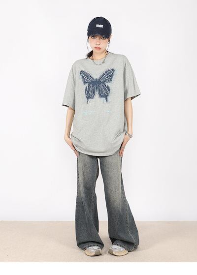 2024 夏 韓国 甘いトップス Tシャツ ファッション 半袖 スリムフィット サイド ペイントシルエット ゆったりコーデ 休日レディースサイズ韓国ネック丈 おしゃれ カジュアル メンズライク T | gizshop