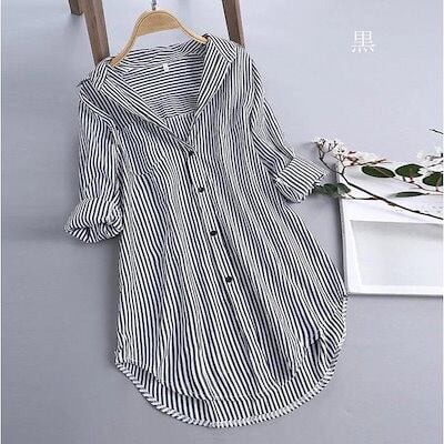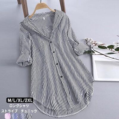 【 迅速な出荷 】ブラウス レディース トップス シャツ 長袖 ストライプ ロングシャツ ゆったり 体型カバー 大きいサイズ ママコーデ カジュアル ロングブラウス 30代 40代 | gizshop