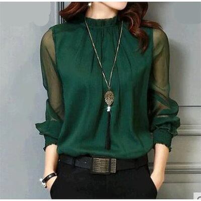 【本日限定】ブラウス レディース 長袖 シャツ トップス とろみシャツ シャツブラウス オフィス フォーマル おしゃれ シャツ シースルー プチハイネック