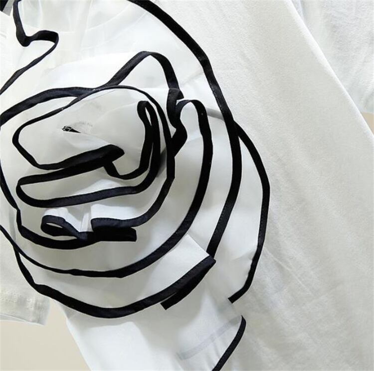 品質自信あり 立体 花飾り 夏 新作 シンプル ライン 半袖 Tシャツ ファッション スリム トップス